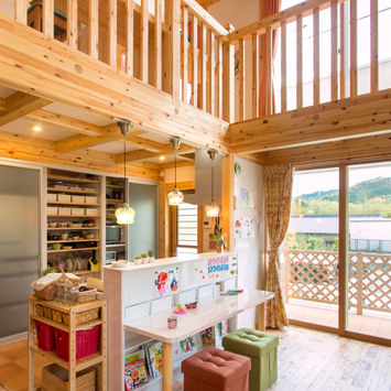 リビングを南向きに希望されるお宅は多いのですが、奥様の希望は南向きキッチン。しかも広々としてかつ小さな子どもたちが遊んでいるのを見ながら作業できるような配置、加えてパントリーや機能的な動線の確保まで。「子どもたちが大きくなったら、家族みんなで料理を楽しみたいんです」と笑顔で話してくれました。いま4歳のお姉ちゃんは、もうお菓子作りを手伝ってくれるのだそう。「食育」ということばが広く知られているとおり、子どもと一緒に料理をすることは子どもの色々な感覚を養う場、好奇心を育む場にもなりそうです。
